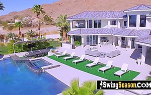 Experienced and newbie couples share their time with naughty naked games and hot blistering sex in the red room orgy