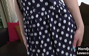 Manojob babe jerks POV oiled cock while talking slutty