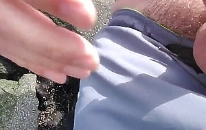 Went for walk on beach. A few people around. Got hard and jerked off until I came. Big close up cum shot.