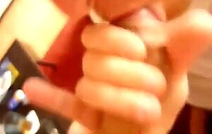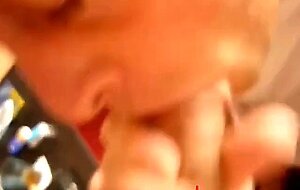 Blowing and stroking my friend and he cums in my mouth