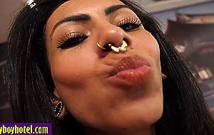 After amazing blowjob guy fucked shemales Isabelly Ferreira tight asshole so deep and hard and she really liked his dick She knelt and started sucking his dick Guy enjoyed busty shemale and she banged her tight ass so hard