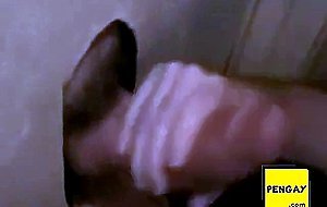 Hot sucking action at the homemade glory hole 6
