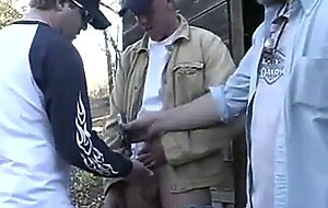 A group of horny daddies can't keep their hands off each other and end up jerking off in public, stroking and edging in this amateur group sex handjob video.