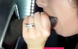 Gloryhole brunette 3 cocks