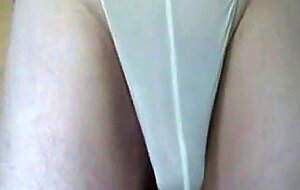 7:15Fooling around with my cock in a G-string, Pre-cum starts to flow and in the end a big load shot through the G-string. Then the cock is released and the cum can float from the foreskin.