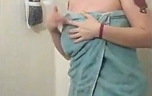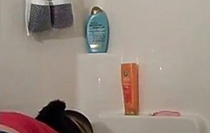 Super thick brunette takes a shower