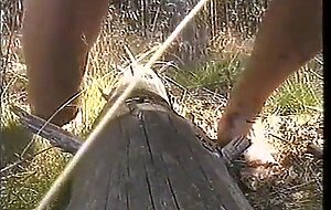 Humping a big tree trunk , then cumming on it
