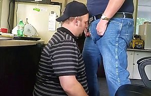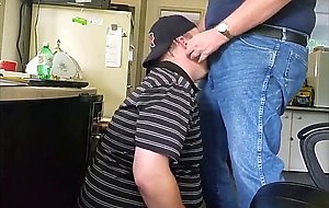 Daddy trucker dumps a quick load in Chubby Boy's mouth...