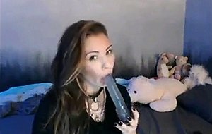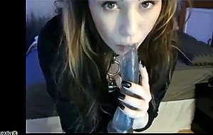 Emo girl puts vibrator in her mouth