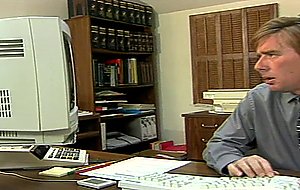flexure OVER AND SAY AHH 2 - While this loser is busting his back at work, his dirty MILF wifey is sucking on another homo hard cock and getting her pussy screwed on the bed paid with his severe earned money !