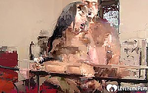 Babe in stockings pleasures his throbbing pecker HD