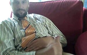 Mature, suit-clad bear strokes his cock. This amateur daddy bear loves to show off his hairy body and big cock. Watch him stroke his meat and shoot a hot load!