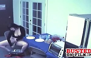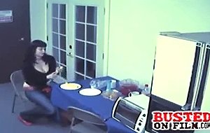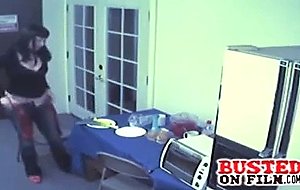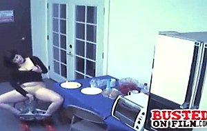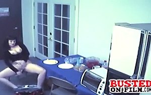 Big titty goth babe gets busted on security cam fucking vegetables after hours.