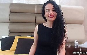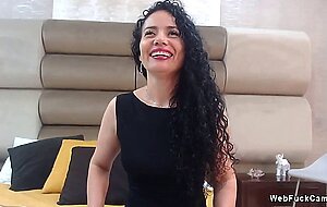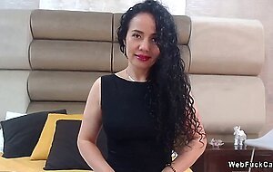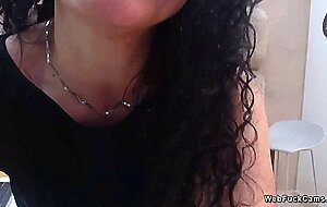 Curly dark haired amateur Latina mature lady Catlin Bouvier lifts up her dress and shows pink panties then masturbates with fingers in live webcam solo show