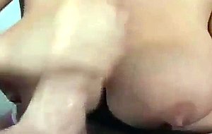 Grabbing her melons while she strokes me till cum