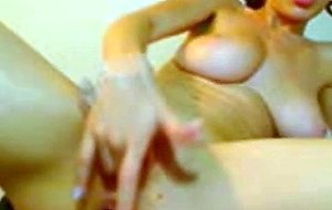 Babe with perfect boobs fingering her snatch