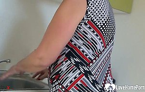 While working in the kitchen, she decided to put on a show while being naked.
