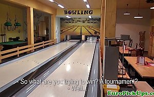 Clitpierced girlnextdoor facialized in for cash at the blowling alley