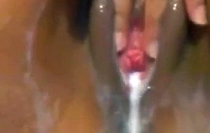 Horny babe with creamy pussy squirting