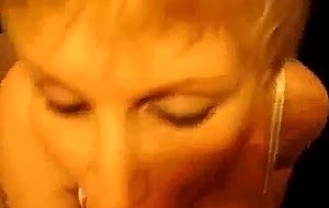 Blond MILF sucks and takes facial