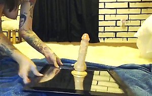Tattooed camgirl fucks herself