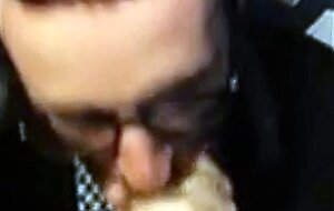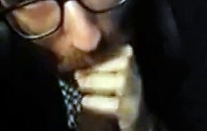 Watch this hot bearded guy giving an amazing blowjob to a lucky stranger in a public restroom! This amateur video is sure to get your heart racing with its intense interracial action and handjob finish.