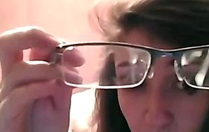 Geeky brunette in glasses gives great head