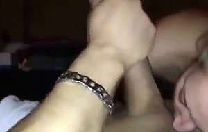 She gives him oral pleasure