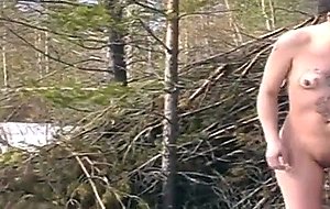Amateur stripping naked outdoors